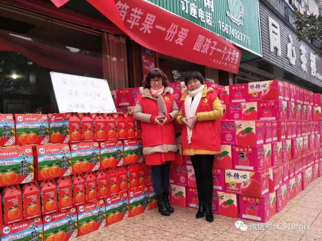 为了能资助到更多的贫困学子,也为了帮助山西和怀化的果农朋友走出困境,在长沙县行政执法局,星沙派出所等相关部门的支持与帮助下,长沙县十帮一义工协会决定再度奉献自己的绵薄之力,帮助果农朋友共渡难关。此次义卖的产品有来自山西临汾的苹果,纯天然绿色不打蜡,味道香脆甜,以及来自怀化的冰糖橙,新鲜营养味美,我们所有产品物美价廉,所得善款既可以帮助农民朋友减少损失,部分善款还将用来资助长沙县的贫困学子,为更多的孩子圆学习之梦。本次义卖地址分别选在了星沙金茂路202号湘源茶楼和干杉大众汽车厂廉租房门口,活动前期,十帮一义工协会的宣传部、组织部早已把准备工作做好,他们在自己的工作之余做好了整个活动的策划,选址,招募,人员分工,活动宣传等所有前期工作,活动期间,我们所有志愿者各施其职,有负责介绍产品的,有负责搬运货物的,还有专门负责收款的、记账的,每个人都服务热情周到,所有人员分工明确配合默契,整个活动现场温馨又热闹,而本次活动的800件苹果和300件甜橙也几乎售馨 ,活动取得圆满成功,爱和团结让我们亲如一家人。